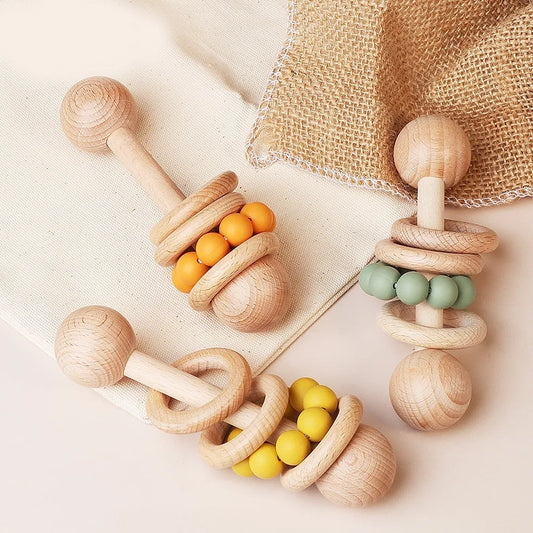 Beech Wooden Rattle Hand Bell Toy