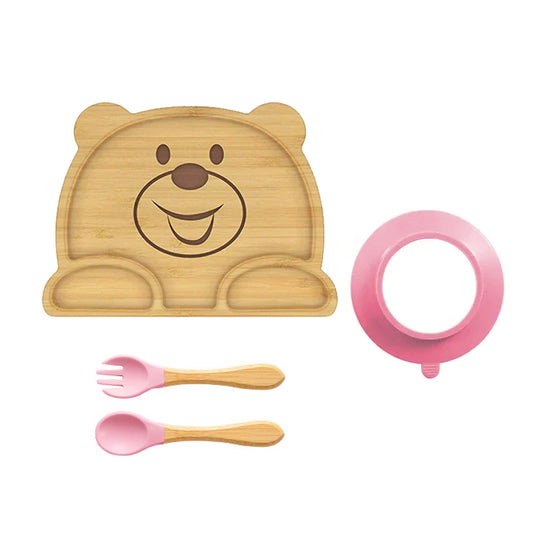 Bear Shaped Bamboo Suction Plate with Fork & Spoon