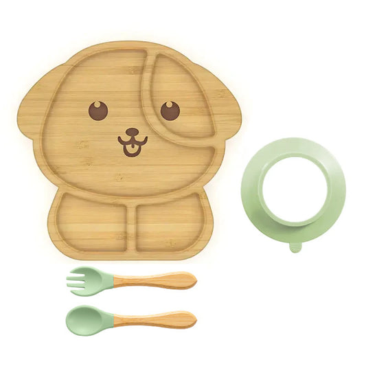 Dog Shaped Bamboo Suction Plate with Fork & Spoon