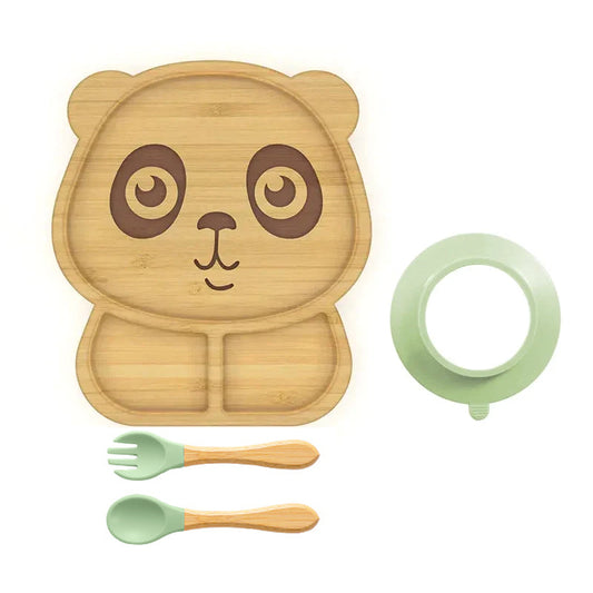 Panda Shaped Bamboo Suction Plate with Fork & Spoon