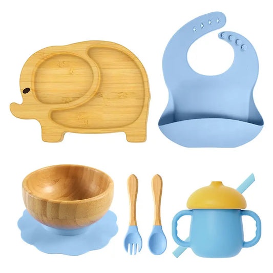 Elephant Shaped Bamboo Baby Feeding Full Set